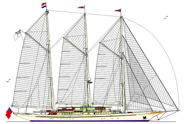 -bowed three-masted gaff-rigged schooner that Silicon Graphics founder James H. Clark had Royal Huisman build for him in 2004.